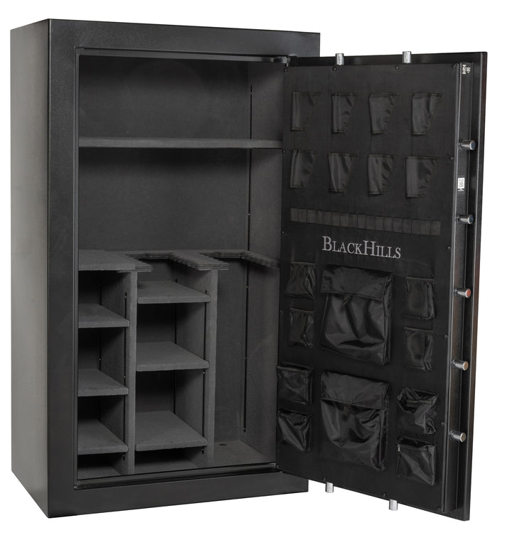 The BlackHills gun safe is the feature filled option for all your gun storage needs. This upgraded design is engineered using thicker than average steel in the door and body, multi-layered fire board construction and the ability to hold more than just your firearms. The BlackHills Series will not let you down.